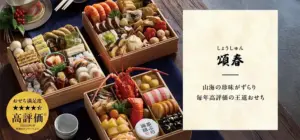 価格 86,184円(税込) 送料 送料無料 人数の目安 約3~5人前 品目数 43品目 御重のサイズ 約8寸✕2段重(縦横約24cm✕24cm、高さは2段重ねた状態で約14cm)+別添付箱(短辺約11.5cm✕長辺約1 […]