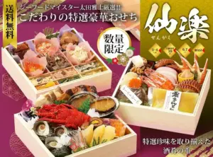 【仙楽(せんがく)特選豪華三段重】グルメ杵屋の御節通販「数量限定こだわりの特選豪華おせち」