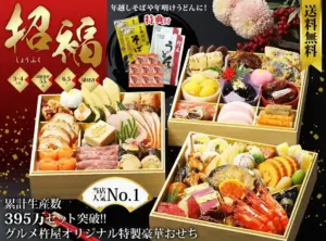 【招福(しょうふく)高級食材三段重】グルメ杵屋の御節通販「年越しそば、年明けうどん付き」